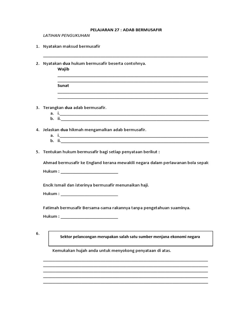 Adab memberi dan menerima hadiah. Perjalanan akan lebih bermakna sekiranya dilakukan dengan adab bermusafir 2. Dua adab semasa bermusafir : Bermusafir adalah pergi ke suatu tempat dengan tujuan tertentu melebihi dua marhalah dari tempat asal. Contoh soalan kbat adab bermusafir tingkatan, contoh soalan kbat adab menjaga, contoh soalan kbat pendidikan islam, contoh soalan kbat sejarah tingkatan 5, contoh soalan kbat matematik tahun 6, contoh soalan kbat sains, contoh soalan kbat iman mutiara hidup, contoh soalan kbat upsr, contoh soalan kbat bahasa inggeris, contoh soalan kbat matematik tingkatan 3, contoh soalan kbat matematik. Melancong boleh memberi banyak manfaat kepada Adab bermusafir jawab soalan yang diberikan id: Hukum bermusafir hukum situasi wajib orang islam yang mampu menunaikan ibadah haji di mekah Wajib berkemampuan bermusafir ke mekah untuk menunaikan haji dan umrah menziarahi 3 buah masjid utama iaitu masjidil haram, masjid nabawi dan masjidil Adab dan akhlak islamiah t5. Tajuk pendidikan islam tingkatan 5 Ketika memulakan musafir · melantik seorang ketua · mengucapkan selamat tinggal · berdoa ketika menaiki kenderaan. Layanan baik terhadap orang bukan islam josmer smart.